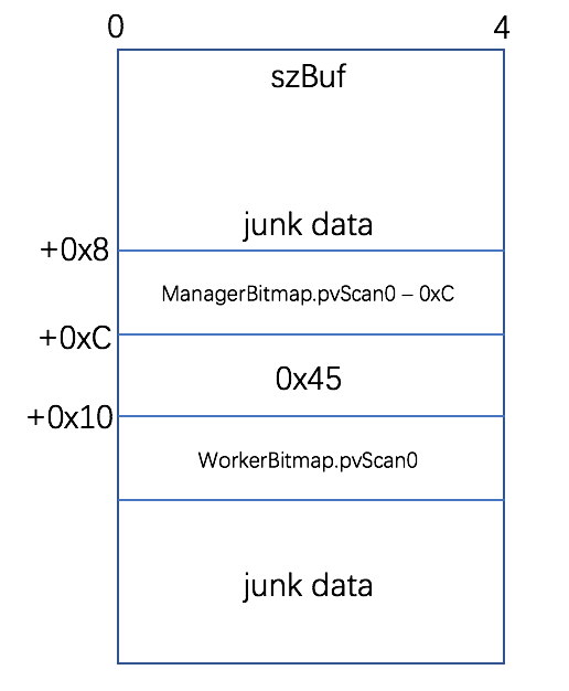 这部分数据覆盖了bitmap的kernel object,需要对szbuf再做一点fix。